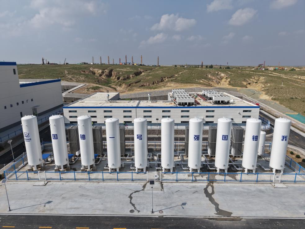 圖為“國鈾一號(hào)”示范工程地浸鈾礦山氧氣和二氧化碳?xì)怏w罐。(中核集團(tuán)供圖)