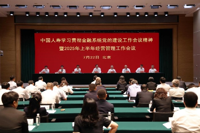 2025年7月22日,中國(guó)人壽集團(tuán)在京召開學(xué)習(xí)貫徹金融系統(tǒng)黨的建設(shè)工作會(huì)議精神暨2025年上半年經(jīng)營(yíng)管理工作會(huì)議。中國(guó)人壽集團(tuán)黨委書記、董事長(zhǎng)蔡希良代表集團(tuán)黨委作《深入學(xué)習(xí)貫徹金融系統(tǒng)黨的建設(shè)工作會(huì)議精神 以高質(zhì)量黨建促進(jìn)高質(zhì)量發(fā)展》講話,推動(dòng)將習(xí)近平總書記“五個(gè)進(jìn)一步到位”重要要求貫穿到中國(guó)人壽落實(shí)金融系統(tǒng)黨的建設(shè)工作會(huì)議精神的全過(guò)程、各方面。集團(tuán)黨委副書記、總裁李祝用作2025年上半年經(jīng)營(yíng)管理工作報(bào)告,總結(jié)上半年經(jīng)營(yíng)管理情況,對(duì)下半年經(jīng)營(yíng)管理工作提出要求。集團(tuán)黨委副書記張璐主持會(huì)議。