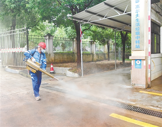 ??? 江門日報訊 (文/圖 記者/蔡昭璐 通訊員/江城管) 8月2日下午2時許,在蓬江區(qū)新昌路高爾夫生活垃圾中轉(zhuǎn)站,環(huán)衛(wèi)工人手持金屬噴霧槍,對垃圾中轉(zhuǎn)站內(nèi)部、周邊綠化帶、排水渠等重點(diǎn)區(qū)域展開消殺作業(yè),以有效降低蚊蟲密度,防控基孔肯雅熱、登革熱等蚊媒傳染病。