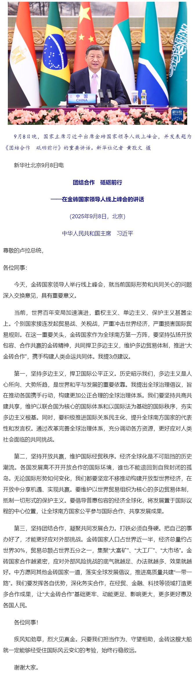 習(xí)近平在金磚國家領(lǐng)導(dǎo)人線上峰會的講話(全文)