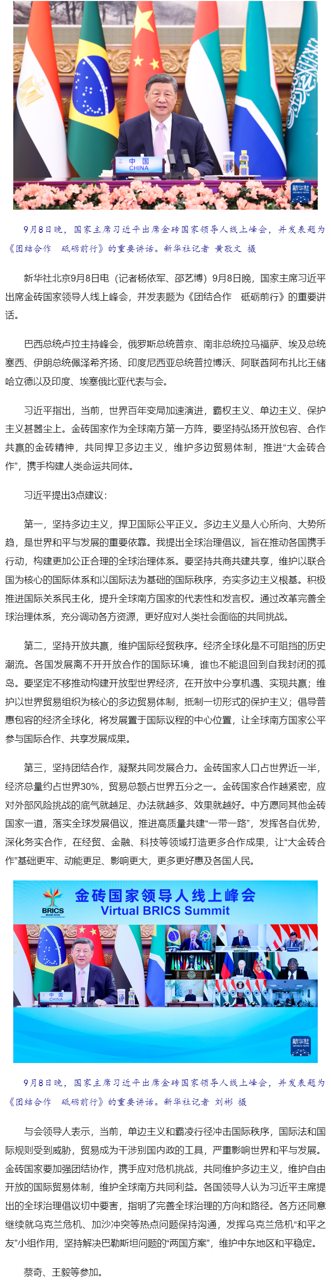 習近平出席金磚國家領導人線上峰會并發(fā)表重要講話