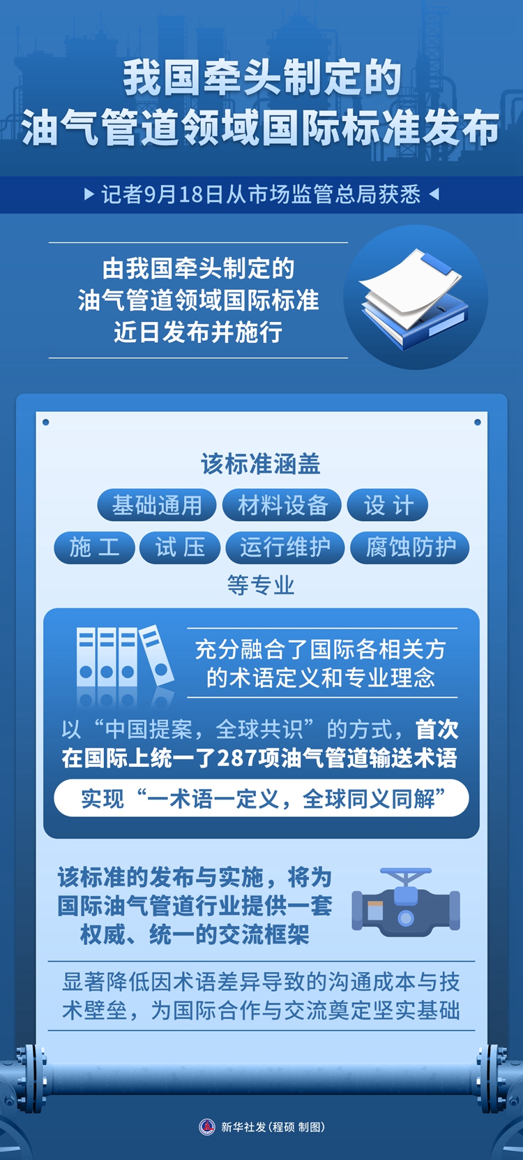 ??新華社北京9月18日電(記者趙文君)記者18日從市場(chǎng)監(jiān)管總局獲悉,由我國(guó)牽頭制定的油氣管道領(lǐng)域國(guó)際標(biāo)準(zhǔn)近日發(fā)布并施行。