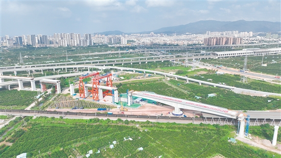 深江高鐵北起深圳西麗站,南至江門站,正線全長約116公里,其中深圳西麗至廣州南沙段設(shè)計時速200公里,廣州南沙至江門段設(shè)計時速250公里。中鐵二十五局承擔(dān)了深江高鐵12標(biāo)13.41公里正線、545孔箱梁制運(yùn)架以及全線鋪軌等施工任務(wù)。