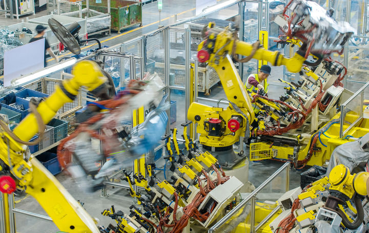??2025年10月9日,浙江省湖州市長(zhǎng)興經(jīng)濟(jì)技術(shù)開(kāi)發(fā)區(qū)一家汽車(chē)部件有限公司的技術(shù)人員操控工業(yè)機(jī)器人生產(chǎn)新能源汽車(chē)配件(無(wú)人機(jī)照片)。新華社發(fā)(譚云俸攝)