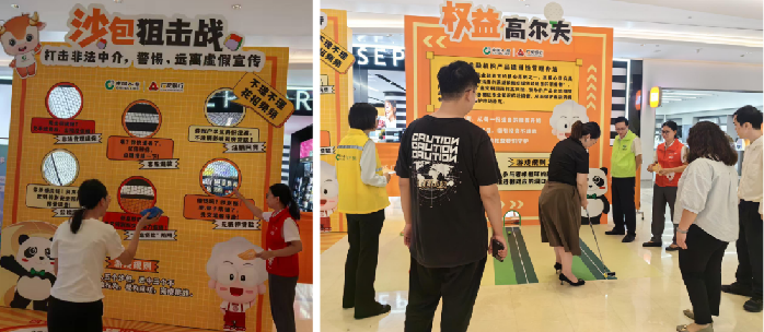 “消保快閃店”區(qū)域以時(shí)尚陳列形式呈現(xiàn)防范非法中介、保護(hù)個(gè)人信息、理性投資等主題展板,市民可觀看學(xué)習(xí),領(lǐng)取參與游戲的“通行券”,完成游戲挑戰(zhàn)后兌換禮品,實(shí)現(xiàn)學(xué)習(xí)與激勵(lì)的良性循環(huán)。