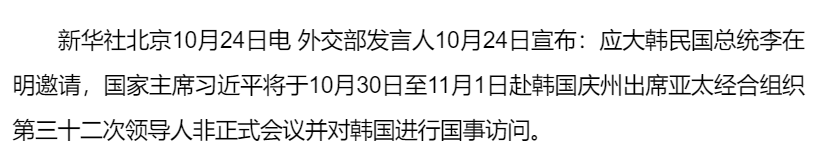 習(xí)近平將赴韓國出席亞太經(jīng)合組織第三十二次領(lǐng)導(dǎo)人非正式會(huì)議并對(duì)韓國進(jìn)行國事訪問