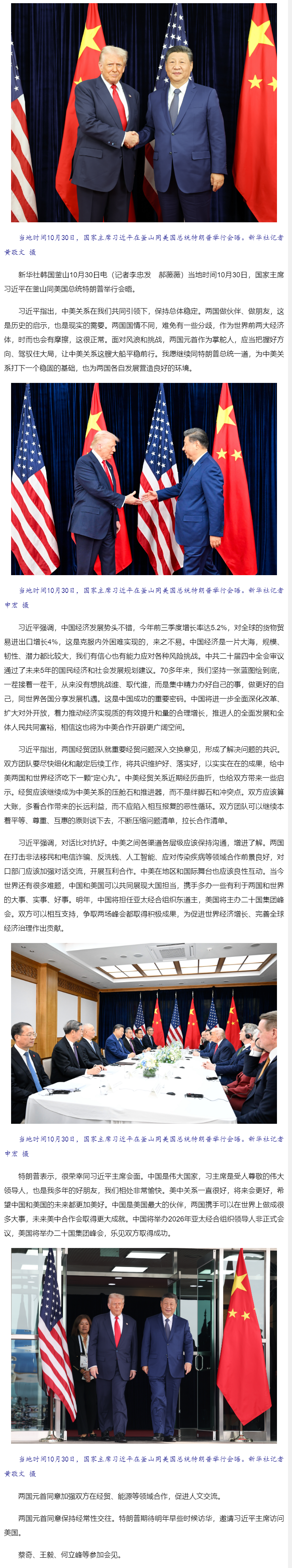 習(xí)近平同美國(guó)總統(tǒng)特朗普在釜山舉行會(huì)晤
