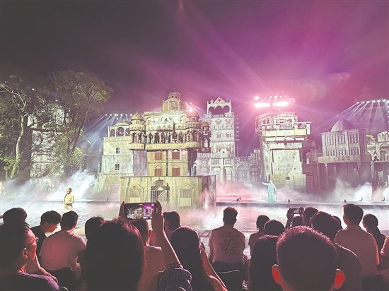????而到了尾聲,燈光突然聚焦舞臺(tái)——11座實(shí)景碉樓模型,瑞石樓的青灰墻體,南樓的防御細(xì)節(jié),每一處都復(fù)刻著真實(shí)的開平碉樓?!斑@是廣東唯一的世界文化遺產(chǎn),也是僑鄉(xiāng)人民的智慧結(jié)晶?!标愱菩裾f,《火秀》從來不是簡(jiǎn)單的光影表演,它是用故事串起牽掛,用技藝詮釋智慧,最后把僑鄉(xiāng)魂輕輕揉進(jìn)觀眾記憶里。