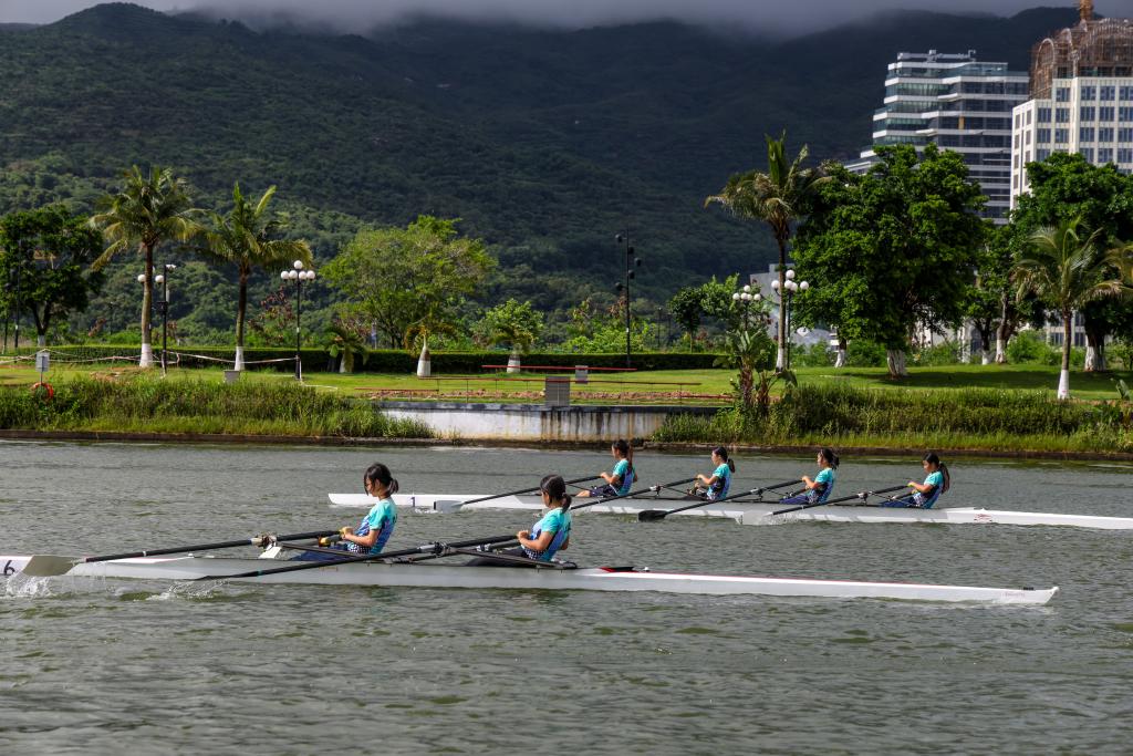 2025年6月21日,青少年在橫琴天沐河上進(jìn)行賽艇訓(xùn)練。新華社記者 毛思倩 攝