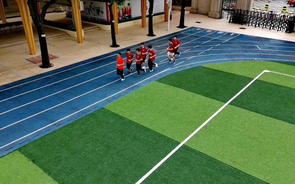 廣東現(xiàn)代五項(xiàng)運(yùn)動(dòng)協(xié)會(huì)教練員帶領(lǐng)廣州市中黃港澳子弟學(xué)校學(xué)生進(jìn)行慢跑訓(xùn)練。新華社記者 肖恩楠 攝
