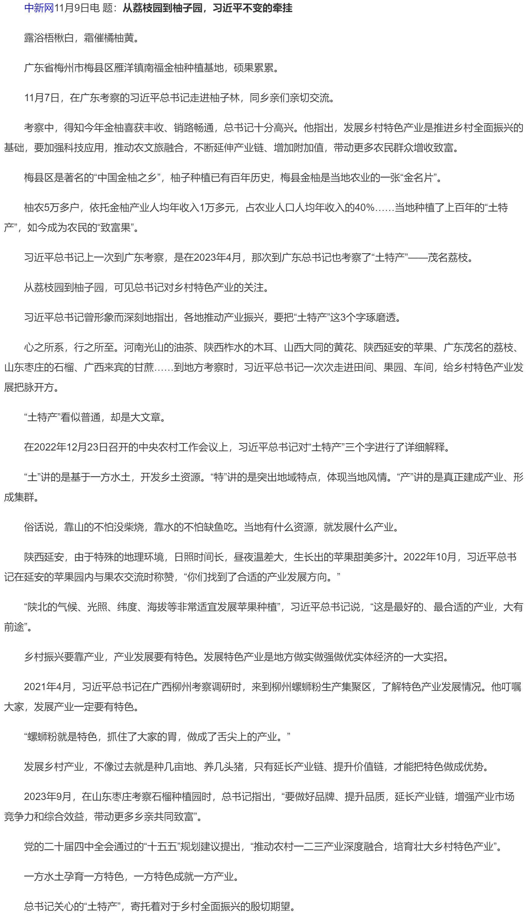 習(xí)言道|從荔枝園到柚子園,習(xí)近平不變的牽掛