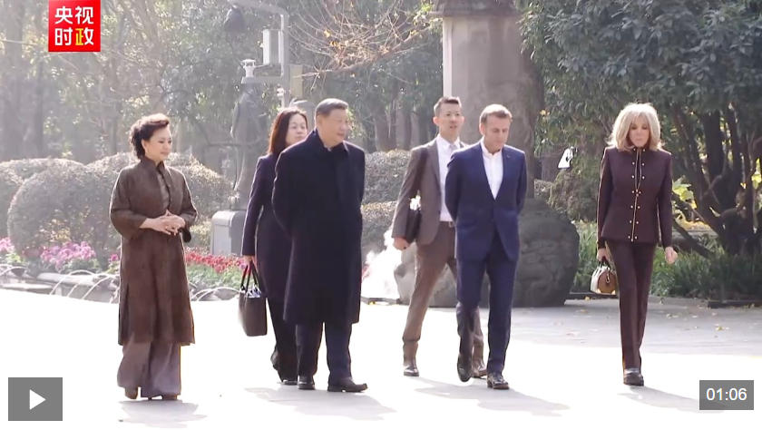 ??初冬的都江堰,蒼山掩翠。馬克龍夫婦抵達(dá)時,受到習(xí)近平和彭麗媛熱情迎接。兩國元首夫婦沿堰功道邊走邊談。習(xí)近平介紹都江堰歷史和意義,指出都江堰水利工程是全世界迄今唯一仍在使用的古代水利工程,也是人類與自然和諧共生最早的成功實(shí)踐之一,修建過程充分反映了中華民族自強(qiáng)不息、不畏艱難、勇于開拓的精神。兩國元首夫婦落座懷古亭,臨水品茗,縱論天下。