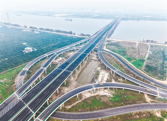 △昨日,江門首條由市屬國(guó)企獨(dú)立投資建設(shè)的超百億元交通項(xiàng)目銀洲湖高速通車,終結(jié)了銀洲湖兩岸無南北向高速的歷史。新華社發(fā)