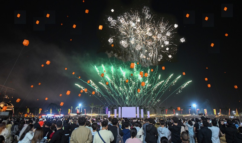 ????2025年12月31日晚,古勞水鄉(xiāng)迎來年度高光時(shí)刻——跨年煙花狂歡夜,當(dāng)晚入園人次突破2萬。當(dāng)天19時(shí)至24時(shí),電音派對(duì)激情炸場(chǎng),動(dòng)感節(jié)奏點(diǎn)燃全場(chǎng)氛圍;篝火晚會(huì)溫情圍聚,歡聲笑語暖意融融;千盞電子孔明燈冉冉升空,承載著人們對(duì)新年的期許飛向夜空。兩場(chǎng)大型煙花秀分別于21時(shí)與24時(shí)璀璨綻放,絢爛光影映照水鄉(xiāng)夜空,數(shù)萬名市民游客攜手倒數(shù),共同迎接2026年的到來。同期舉辦的美食文化節(jié),讓市民游客在歡樂氛圍中盡享地道嶺南風(fēng)味。